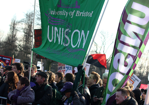 The protest was organised by the TUC, NUS (National Union of Students) and UCU (University and College Union).
