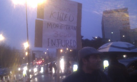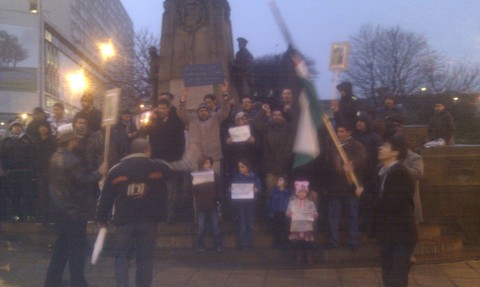 The protest in Bradford has assembled as Gaddafi's security forces continue their brutal crackdown on the people of Libya, who are calling for freedom from a dictatorship that has perservered in the country since 1969. The uprising began on the 13th January 2011 and is continuing.