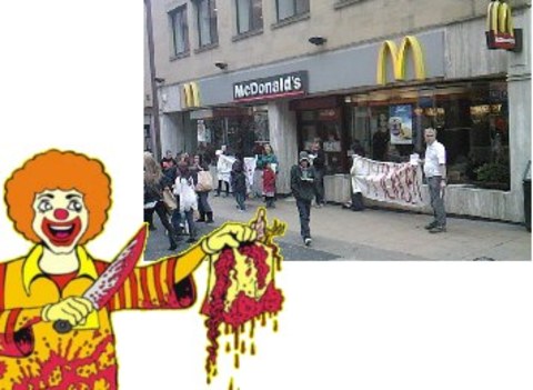 Animal rights activists converged on McDonalds in the town centre of Bradford in protest at the faceless corporations animal cruelty.