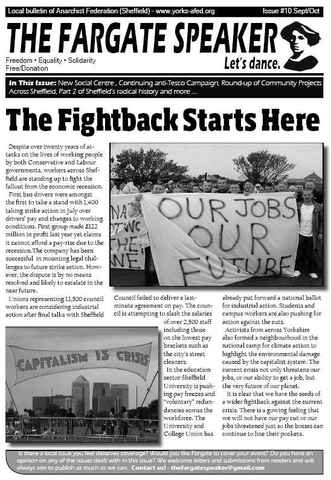 Latest issue of Anarchist Federation (Sheffield) local bulletin The Fargate Speaker (#10) out now.