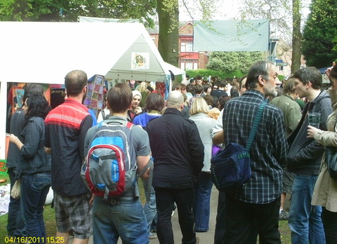 The festival took place entirely inside the church grounds and resembled a big parish fete. But it was anything except parochial. There were plenty of exclusively local projects, such as Hulme Community Garden, Manchester Beekeepers, the low carbon cookbook published by Didsbury Civic Society, and Tagpassiton, a loyalty scheme for independent businesses. But there were many other organisations which gave the event both a national and international flavour. The national organisations included the usual green suspects such as Greenpeace, Friends of the Earth and the Vegetarian Society, but there was also a stall collecting signatures for the Robin Hood Tax petition (www.robinhoodtax.org.uk). International organisations included the New Internationalist and the World Development Movement.