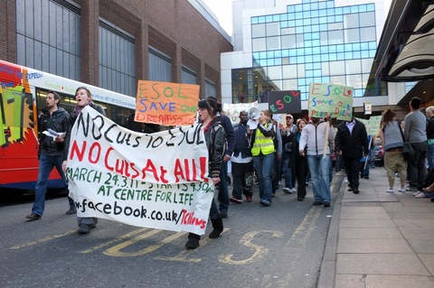 On Thursday 24th March Tyneside Community Action Against Racism led a march in Newcastle against cuts to English lessons for speakers of other languages (ESOL).