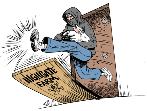 On 13th October 2008, four people were arrested after their car was stopped in Lincolnshire, with CCTV footage later showing that they had been on the property of the Highgate Rabbit Farm. Known as the Highgate Four, they were later charged with ‘conspiracy to commit criminal damage’ and section 145 of the Serious Organised Crime and Police Act (SOCPA), ‘conspiracy to interfere with contractual relations so as to harm an animal research oganisation’. In May 2009, one of the defendants was found not guilty, whilst the other three pleaded guilty to reduced charges and await sentencing.