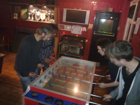 After the film showing and question and answer session there was chocolate cake and zapatista coffee in the cafe. In the bar the Ned Ludd soundsystem provided some funky beats while two local teams took on Mexico in a mini league of table football - Mexico were victorious, although the women's team put on a mighty show of talent.