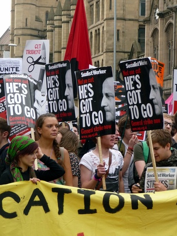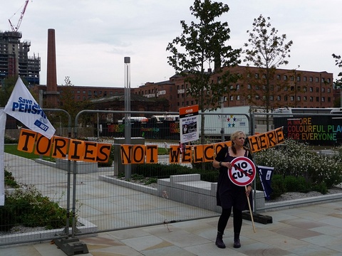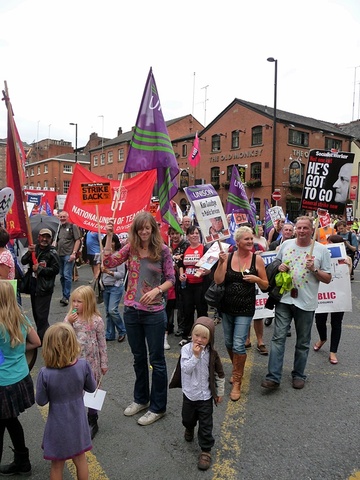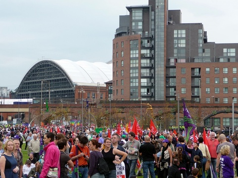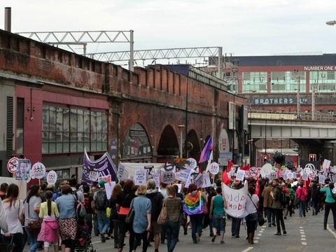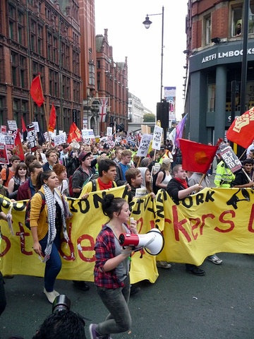 Around 30,000 demonstrators took to the streets of Manchester today to protest against the Conservative Party Conference. The demonstration, named ‘Manchester for the Alternative’, was organised by the Trades Union Congress and the Right to Work campaign, drew in unionists and anti-cuts protestors from around the UK, with some coming from as far away as the West Country and Wales.