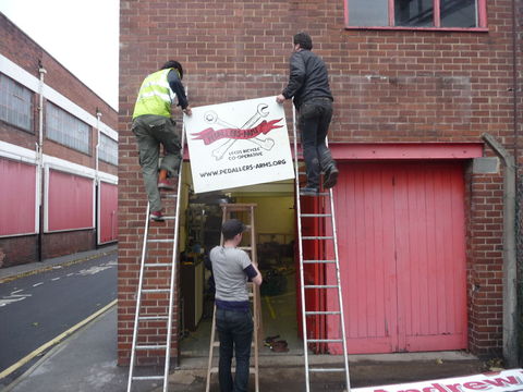 The Pedallers' Arms workshop shares a building with The Space Project [1], a radical education space presented by The Really Open University[2]. (It's the unassuming red door that hasn't got a sign on at the time of writing[3]).