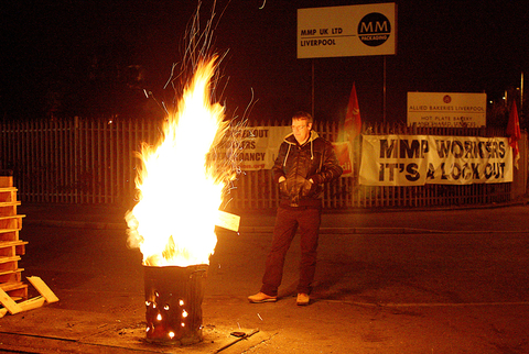 Night Pickets at the Mayr-Melnhof Packaging plant in Bootle, Merseyside.
