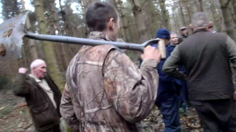 At the end of November we sabbed the York & Ainsty South hunt with Manchester Sabs. The morning was uneventful, but around mid-day a fox was hunted into an earth. We got to the earth before the terrier men, but over 10 people then came to move us off the earth so the terrier men could dig-out and kill the fox. These people became violent but we stood our ground and made them leave (pictured). They came back 2 more times that day to try again but we stopped them each time. They then came back with the police who arrested 5 sabs for "trespassing to disrupt a lawful activity", but these charges were all dropped the day before their court date! Sabs stayed at the earth till after dark to ensure the dig-out couldn't go ahead. Watch footage here: http://www.youtube.com/watch?v=eXkn0e-cbn0