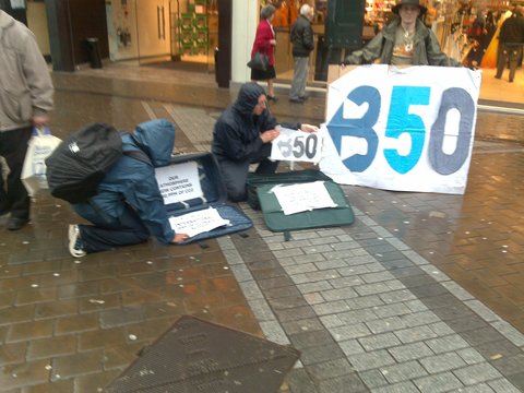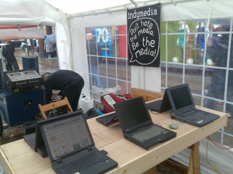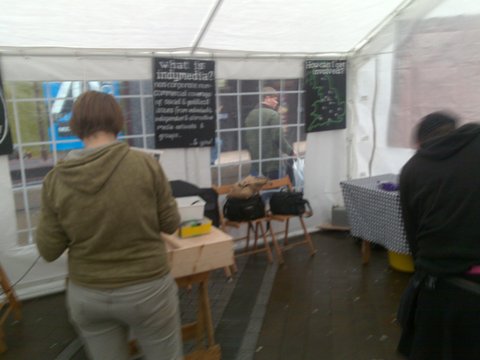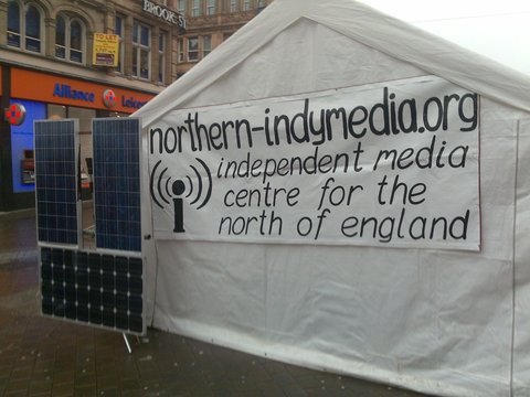Anyone in Leeds today, head down to Briggate where IMC Northern England have put up a "Be the Media" centre from where people attending the mass action, due to take place at 3.50pm can publish their news. We are sharingour tent with the welcome desk for the event so come along to find out more about the many events that are happening throughout the city and around the world.
