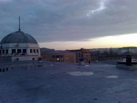 This morning at 5am two local people climbed inside the Odeon in a campaign to save the building. A banner reading 'Save the Odeon' was unfurled at 7.30am to engage the local community with the issue of undemocratic descision making within Bradford Council.