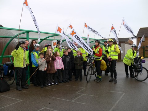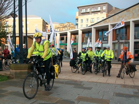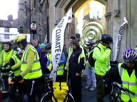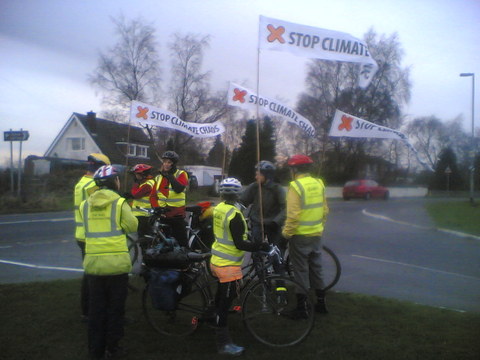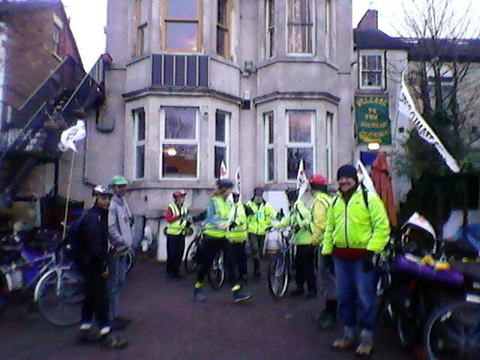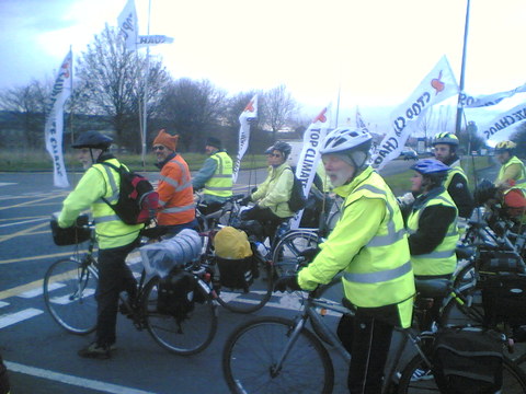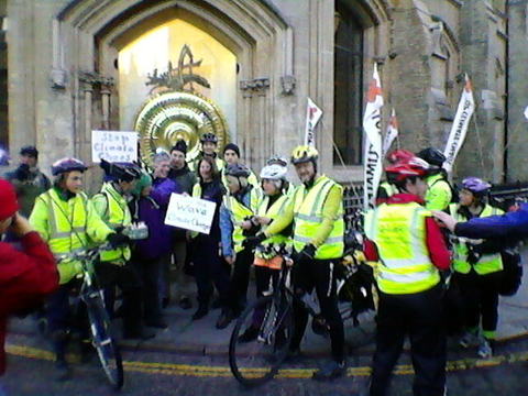 A self-organised group a cyclists from Leeds, Bradford, and other locations along the route departed from Bradford on Monday morning, en route for London on 5th December, to participate in the march there which is itself part of the countdown to Cop15.