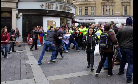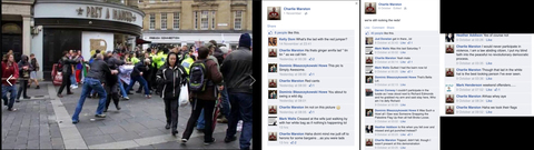 Stephen is known to actively physically attack ‘left-wing’ activists and can be seen in numerous photographs attacking left-wing activists and regularly brags about his attacks online via Facebook.