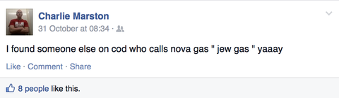 Stephen also plays out some kind of distant fantasy online playing COD with a neo nazi insignia '88'