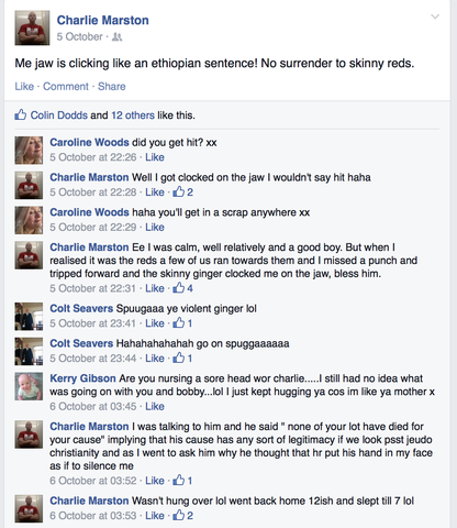 Political History:- Stephens political activity can be dated back as far to the age of 14 in a photo wearing a Screwdriver t-shirt. Up to 2011 attending Iain Stuarts grave, Blood and Honour gatherings and the far-right demonstrations in Millfield, Sunderland (2013) through to the recent National Front Demonstrations in Newcastle (2014).