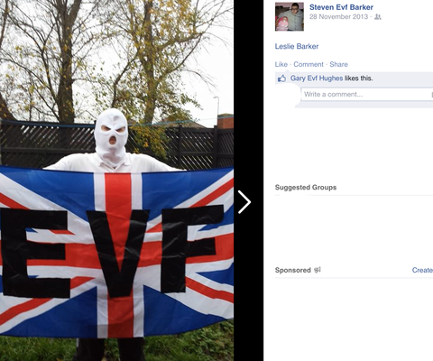 Political History:- Leslie is known to of attended the NEI Berwick demo and regularly poses in photos with his brother Steven Barker with the EVF flag and in a balaclava.