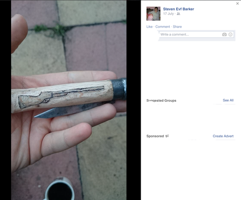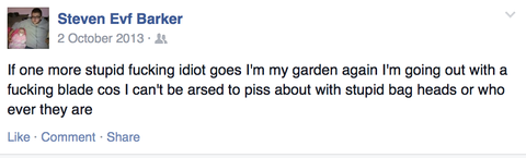 Recently Steven attended the Berwick NEI demo with his brother Leslie Barker (EVF) and stated he attended the National Front/NEI demo in Sunderland on the 15th of November. Caution advised as he is known to be holding a numerous amount of blades, Pellet guns, razor sharp knives, catapults and air rifles.