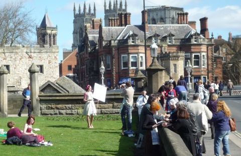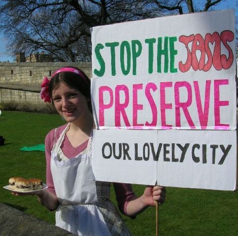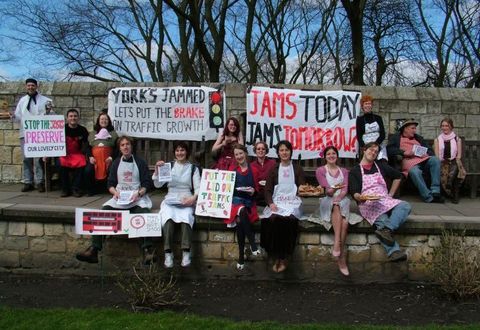 This fun and light-hearted action by the York's Jammed campaign, organised by York Friends of the Earth in alliance with other environmental groups, had a serious side, highlighting the potential surge in traffic threatening York over the next decade. The campaign has started in response to a recent York City Council consultation on traffic congestion with a best case scenario that merely restricts traffic growth to 8-13% by 2020.