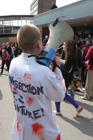 With one third of the 72 universities conducting vivisection, including the three largest (UCL, Cambridge, Oxford), covered with demo's and actions, this has been the biggest week of action the UK animal rights movement has seen in a number of years and is most certainly a success. Other companies with links to academic animal experimentation were also covered; animal breeders, investors and academic consortiums being subject to noisy demonstrations. The UK's largest biotechnology conference was also covered - BioTrinity 2010, attended by hundreds of companies from breeders to animal couriers, cage manufacturers, pharmaceutical companies and universities.