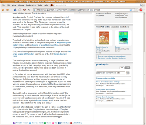 6th July 2009: in Scotland, climate activists sabotage an open-cast coal mine. The story is reported anonymously (by "Spiderman") on Northern Indymedia. Five hours later, The Guardian catches up and runs the same story.