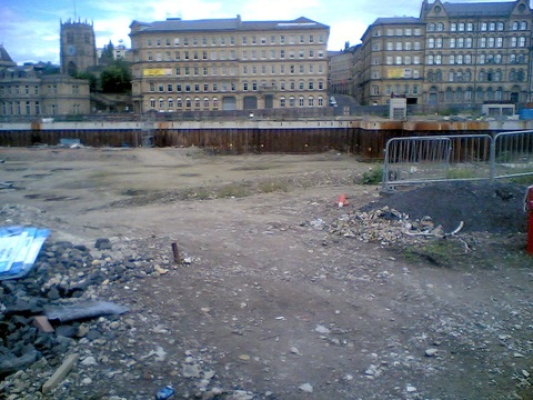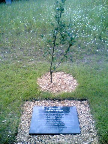 As a responsible citizen and commentator your correspondent felt compelled today to visit the recently opened "Temporary Bradford Urban Garden" which we last reported on in February [1], when plans were about to be unveiled for the opening up of the space.