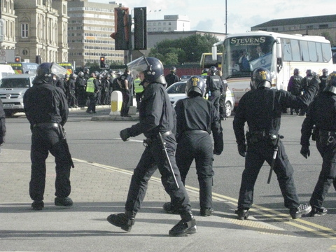 As the last coaches left, a big cheer went up from the lads on the hill and a city breathed out again. The police vans left shortly afterwards and the locals who had feared unrest went back home to swap stories. To the time of writing, no further activities have been reported since the coaches left, and none is expected.
