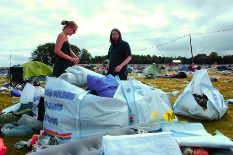 On Monday 30th and Tuesday 31st August 2010, a group of volunteers from the Leeds and Bradford areas went to the site of the Leeds Festival, held over the previous weekend, to salvage tents, sleeping bags and clothing for refugees in Calais who are seeking asylum but denied access to shelter and the right to work there.