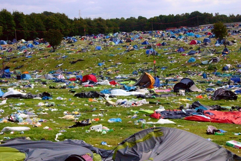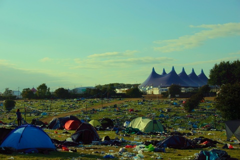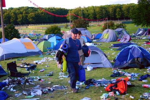 Arriving on site on Monday afternoon, after the festival sight had officially closed, the group encountered what an only be described as apocalyptic scenes. The entire camping area was strewn with litter, debris, tents and other camping equipment stretching as far as the eye can see in all directions. There was barely a patch of grass anywhere where items had not been left by festivalgoers in a depressing display of utterly wasteful behaviour.
