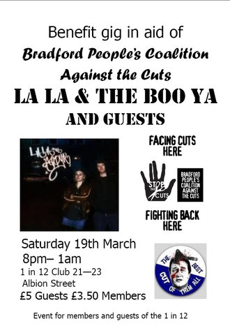 Benefit gig in aid of Bradford People's Coalition Against the Cuts, starring La La and the Boo Ya and Guests