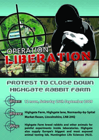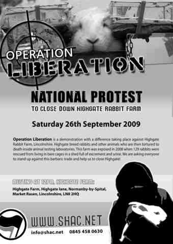 OPERATION LIBERATION - Saturday 26th September 2009, Starts 12 noon at the farm, part of the Global Week of Action against animal lab breeders.