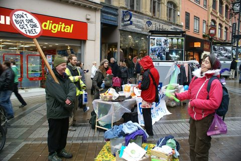 Last year we had Christmas Carols, a free shop, food and all for free in Briggate. Lots of people interested in the concept and lots of cups of tea.