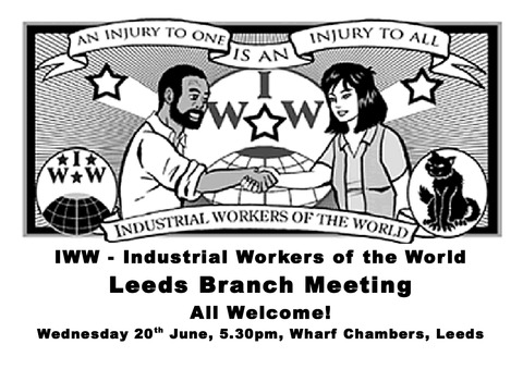 First meeting for the Leeds branch of the Industrial Workers of the World (IWW).