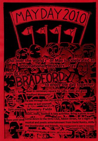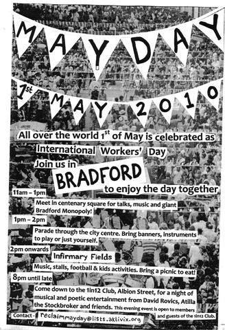 If you'd like to have a stall in the afternoon at infirmary fields or play some music or some other thing that you want to talk to others about rather, than just turn up and do, please email us at reclaimmayday@lists.aktivix.org