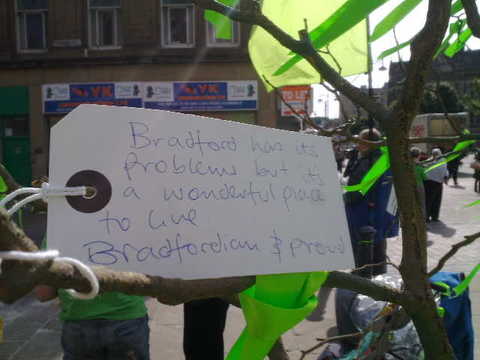Bradford Women for Peace has adopted the colour lime green to symbolise hope,